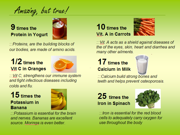 · Moringa leaves contain 3 times the amount of potassium as bananas